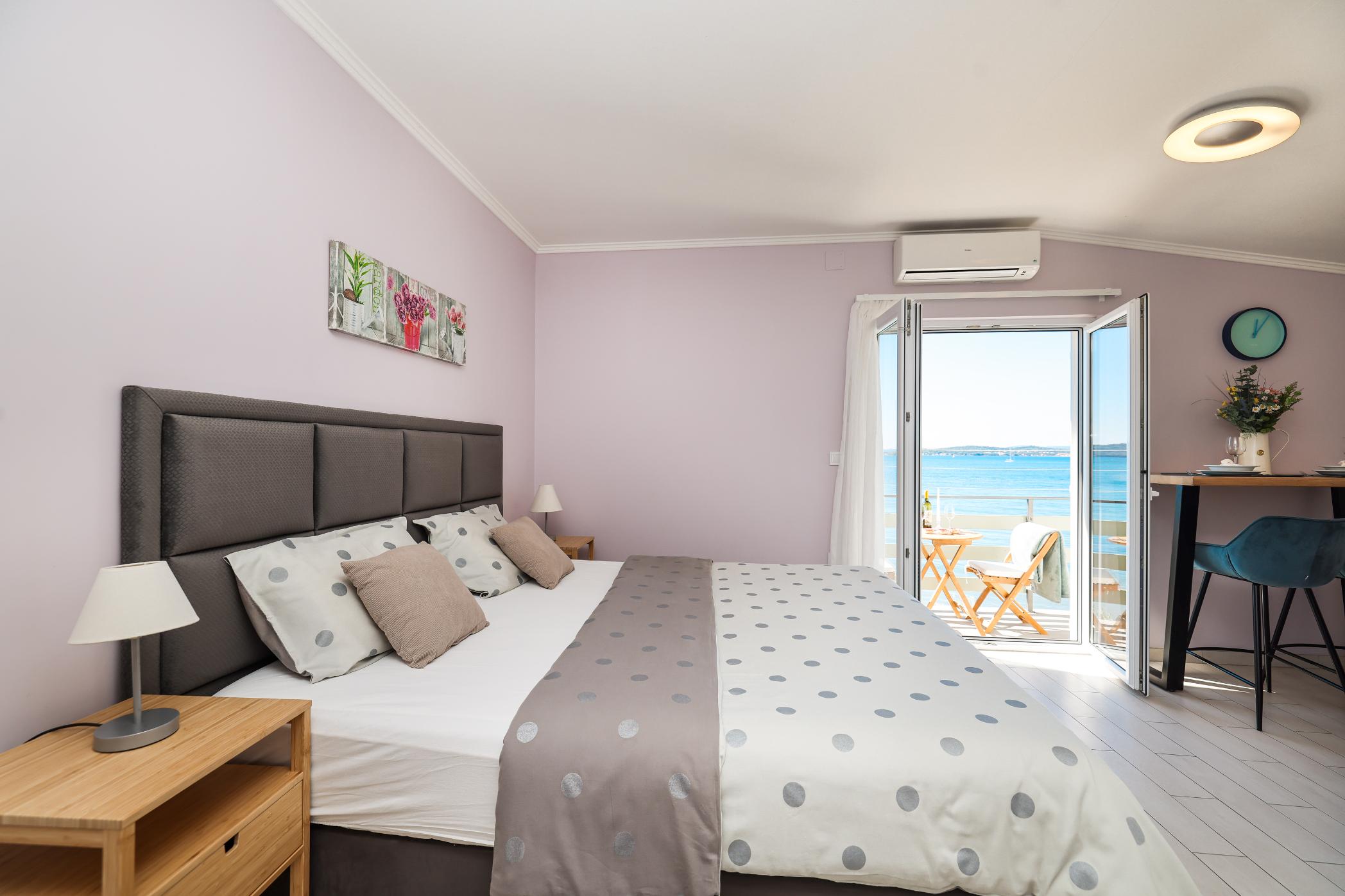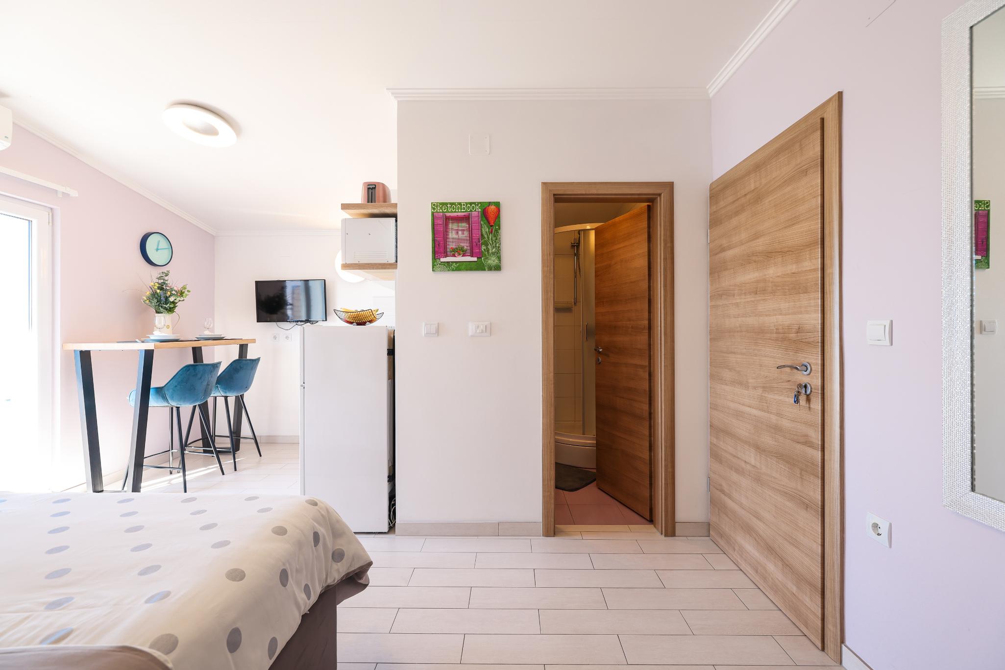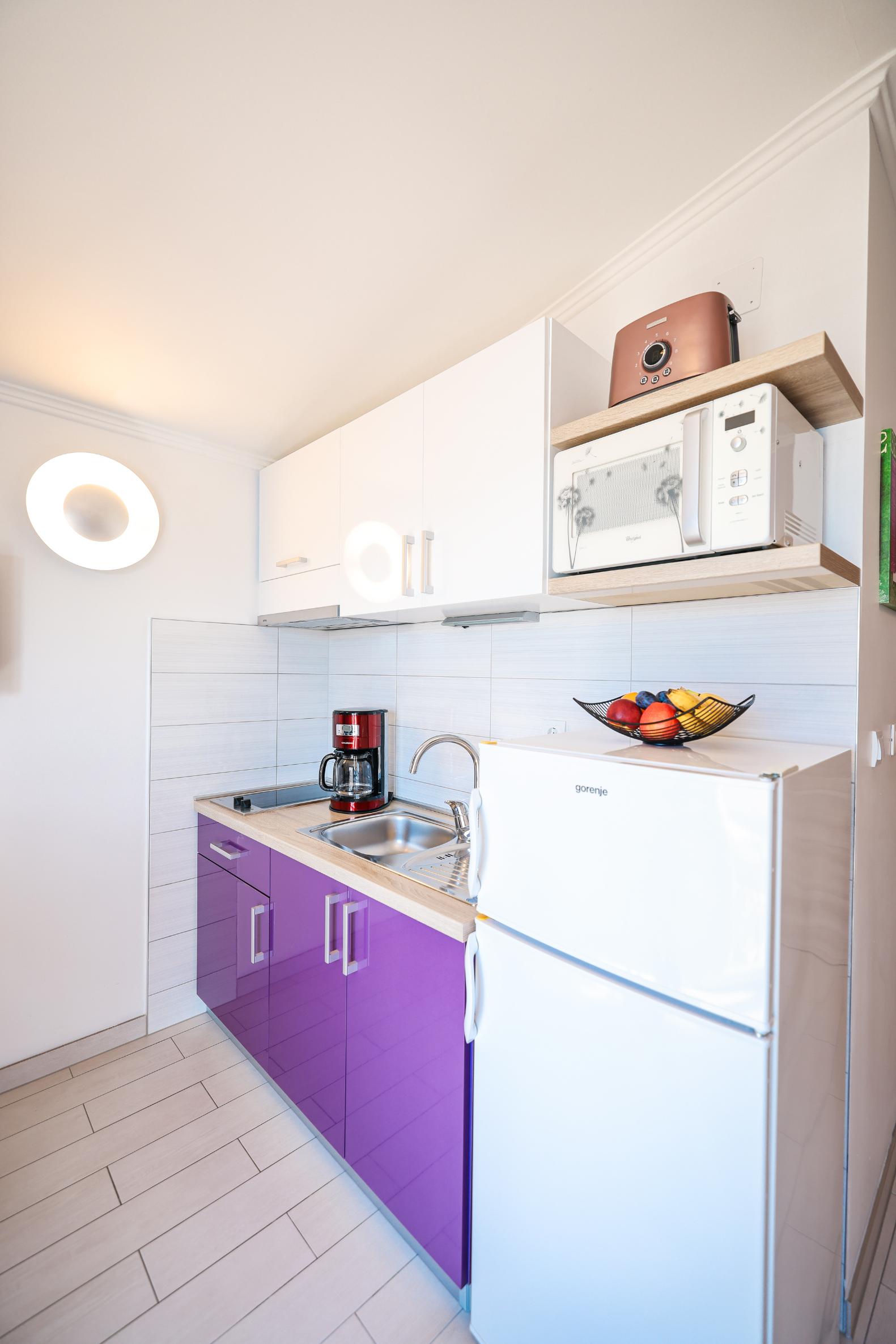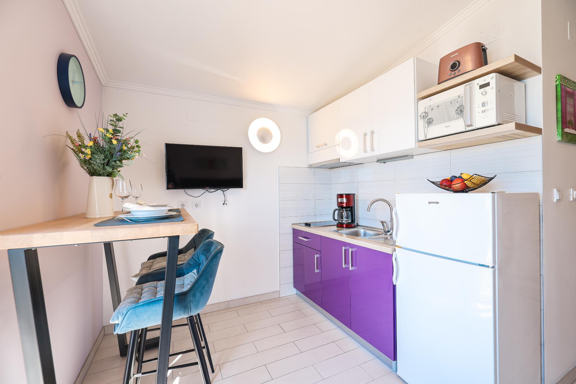 Studio apartment „Lavander“ is for two people situated on the top floor with direct seaview. It consists of the room with kitchen and bed, and separate bathroom. In the vicinity of the house is a parking place. „Lavander“ offers a relaxed vacation with a beautiful panoramic view on the bay and islands from it’s own balcony.